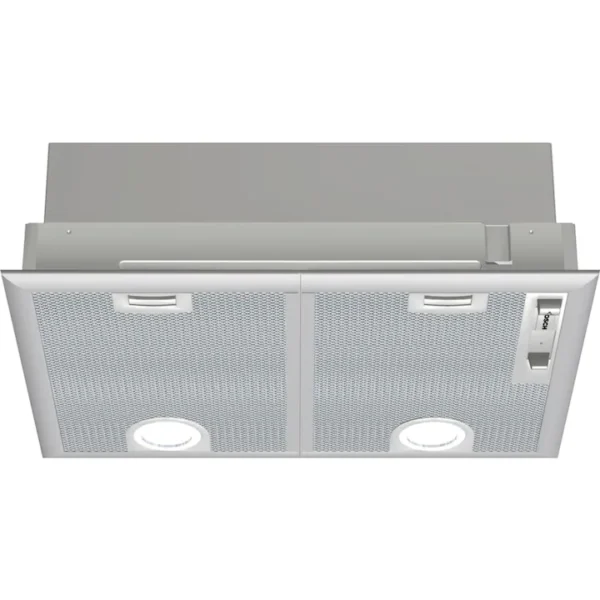 Hota incorporabilă Bosch DHL555BL. Cu o capacitate de absorbție de 681 mc/h, această hotă asigură un aer proaspăt în bucătărie. Iluminarea LED oferă vizibilitate optimă, iar designul compact de 50 cm lățime și culoarea argintie se integrează perfect în bucătăriile moderne.