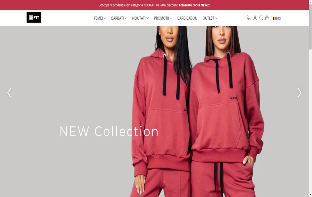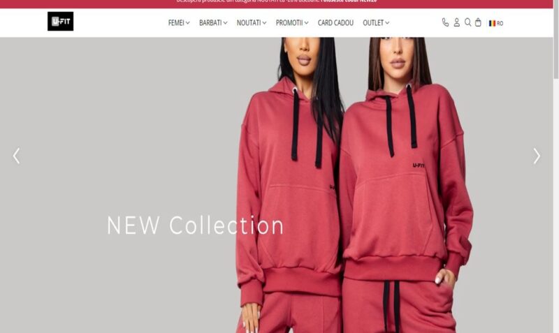 UFit.ro este un magazin online specializat în comercializarea de îmbrăcăminte pentru femei și bărbați, oferind o varietate de produse precum treninguri, seturi de îmbrăcăminte, rochii, fuste, pulovere, geci, pantaloni, cămăși, costume, hanorace, tricouri, colanți, lenjerie modelatoare, costume de baie și accesorii.