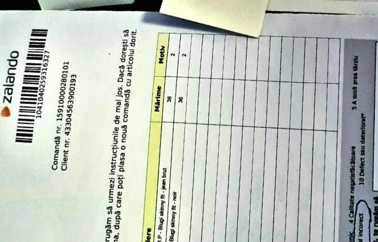 3. Am făcut solicitare de retur pe 26 dec…tocmai pt ca ma grăbeam sa le primesc pe cele potrivite. Am co.pletat formularul și am așteptat curierul… pe 3 ian….am revenit cu email sa întreb ce se întâmplă. Mi s a spus senin ca trebuie sa completez eu alt for.ular pt curier. Ok ! Nu stiu de ce n au putut spune din prima dar ok… Pe formularul surpriza la spațiul pt numele străzii și codul poatal …nu se completa DECAT DACA scriai într un anume mod… lucru pe care l am aflat după minim 20 mailuri catre ei.