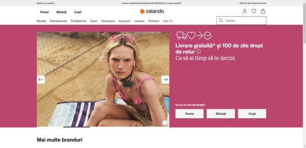 Zalando.ro este un magazin online specializat în comerțul cu produse de tip fashion pentru femei, bărbați și copii. Brandul Zalando este un brand european prezent în mai mult țări fondat în Germania în anul 2008. Este prezent în 25 de țări europene și are vânzări de miliarde de euro. Zalando se remarcă printr-o gamă diversificată de produse de la sute de branduri. Este un concurent veritabil pentru magazine precum FashionDays, AboutYou sau Answear. Zalando comercialiează prodsue din categorii precum: pantofi, rochii, bluze, pantaloni, blugi, sacouri, lenjerie, fuste, geci etc. Printre brandurile de top prezente în ofertă, enumerăm: Tommy Hiligier, Karl Lagerfeld, Levis, Gap, Nike, Converse, Jordan etc. Pagina produselor conține imagini clare, termenul de livrare, detalii, informații despre material și îngrijire, recenzii de la clienți.